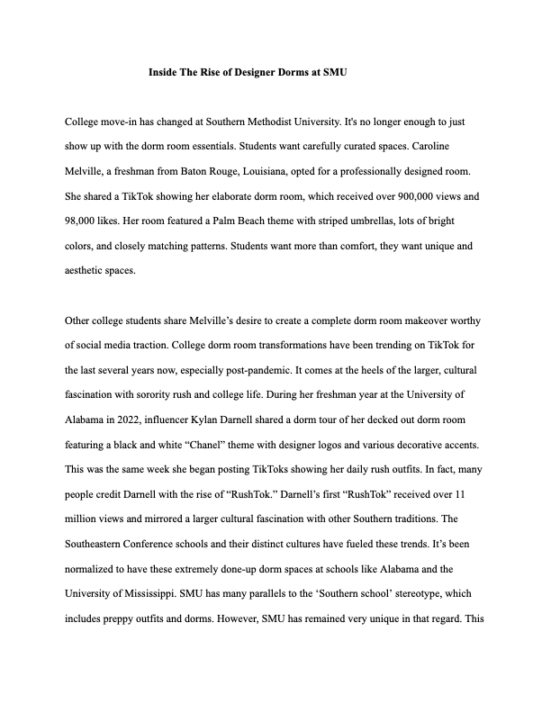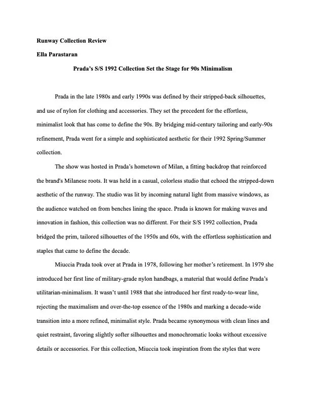 Portfolio Feature I wrote for SMU LOOK Magazine about the rise of luxury dorm decor at SMU. Runway Collection Review I wrote for fashion journalism on Prada S/S 1992.